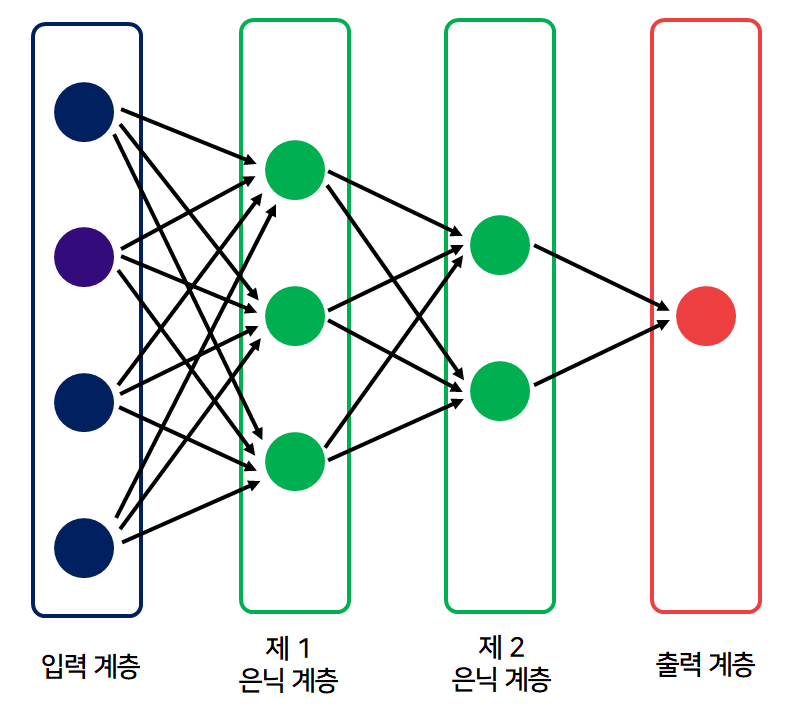 복잡한 데이터를 학습하기 위해 은닉 계층을 많이 쌓아서 만든 인공지능 기술